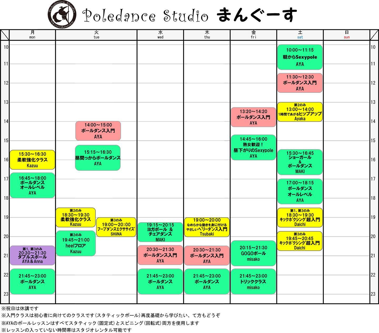 4月スケジュールです ブログ 2020.03.31 ポールダンススタジオまんぐーす4月スケジュールです New Lesson 毎週月曜日15:30〜16:30 柔軟強化ストレッチKazuu 先生 毎月第3火曜日19〜20時 フープダンスエクササイズSHiiNA先生 第2土曜日13〜14時 1時間で上がるヒップアップAyaka先生